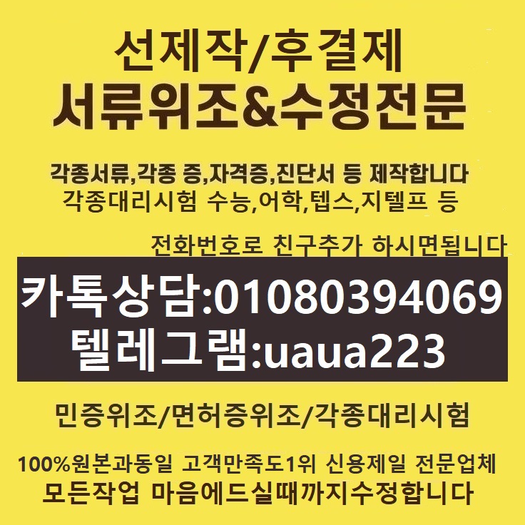 [고퀄제작]학위증명서제작#운전면허증대리시험→톡상담친추01080394069텔레uaua223졸업증명서제작#대리시험#상품권위조#졸업…